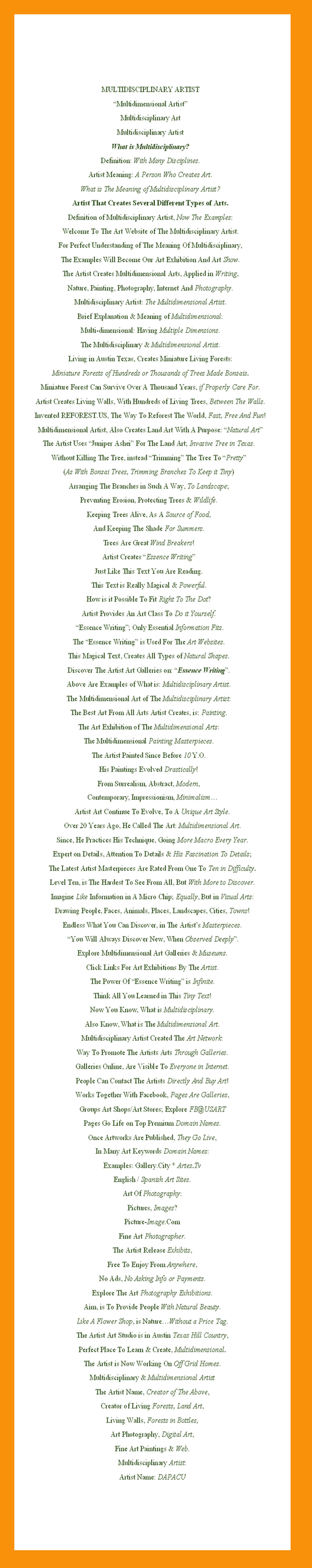 Multidimensional Art: Multidisciplinary Artist Multidimensional Art